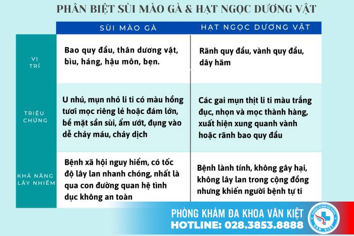 Để phân biệt hạt ngọc dương vật và sùi mào gà, người bệnh có thể dựa vào những đặc điểm sau:
